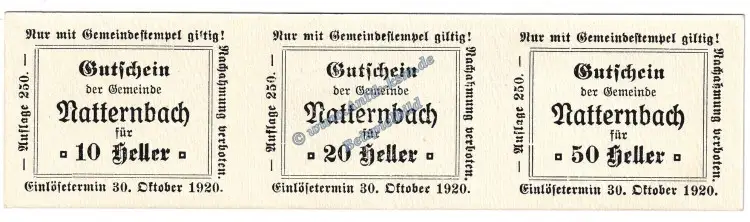Gutscheine / Banknoten der Gemeinde Natternbach , österreichisches NotgeldRegion/Land : Ober Österreich  ,  Kodnar Künstner : S.643.IV.e