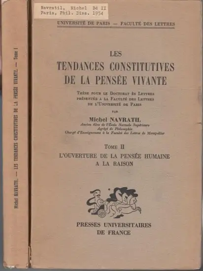 Navratil, Michel: Les Tendances constitutives de la Pensee vivante. Tomes I et II. I) Sensori-Motricite et Imagination comme Conditions de la Pensee Humaine. II) L'ouverture de la pensee humaine a la raison.
