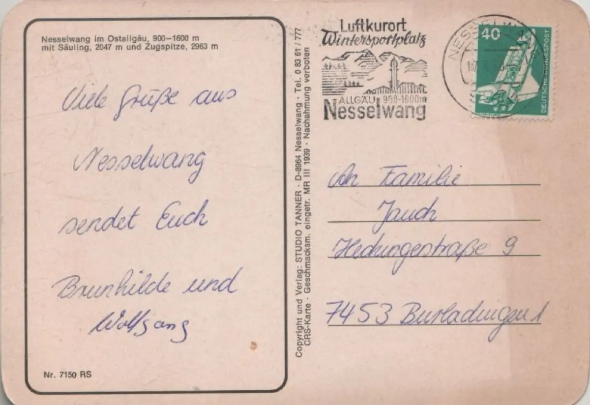Postleitzahl:87484 (neu) / W 8964 (alt)