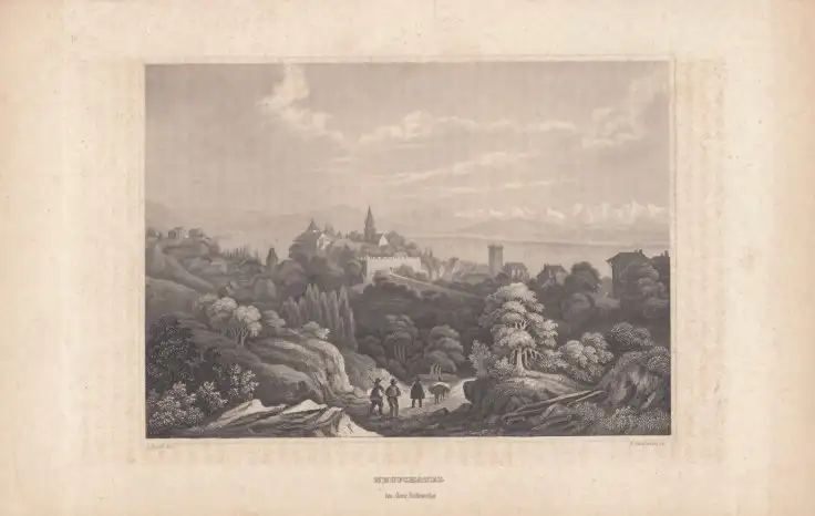 Schlagworte: Originalstahlstich / Neuenburg in der Schweiz, Weitere Medien, Grafiken, Dekorative Grafik