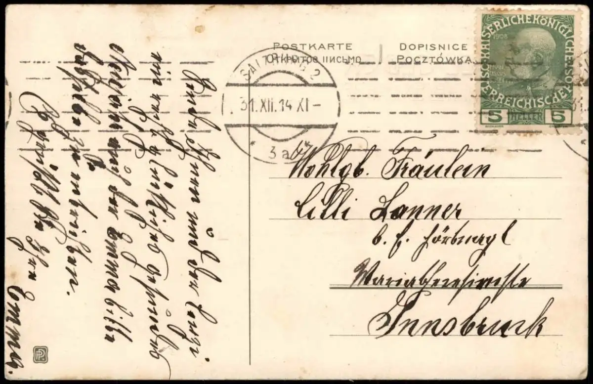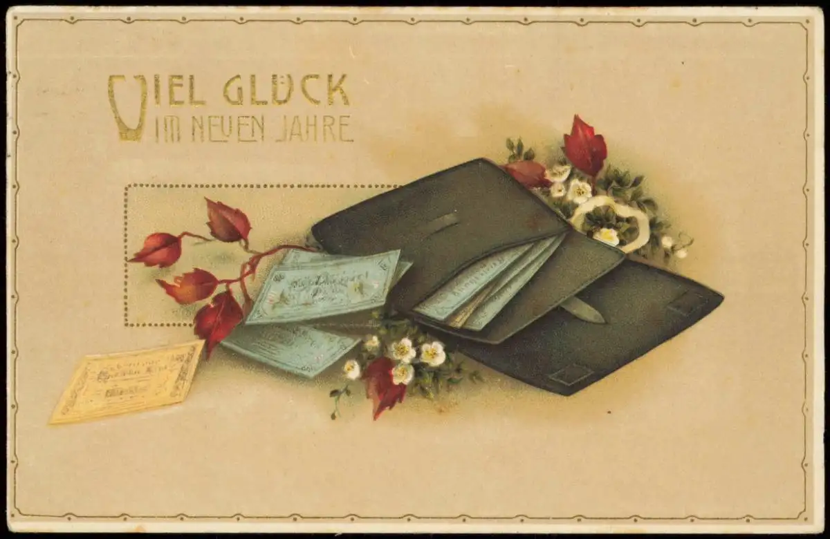 Neujahr Sylvester New Year Geldbörse Geldscheine Misteln 1914 Gold