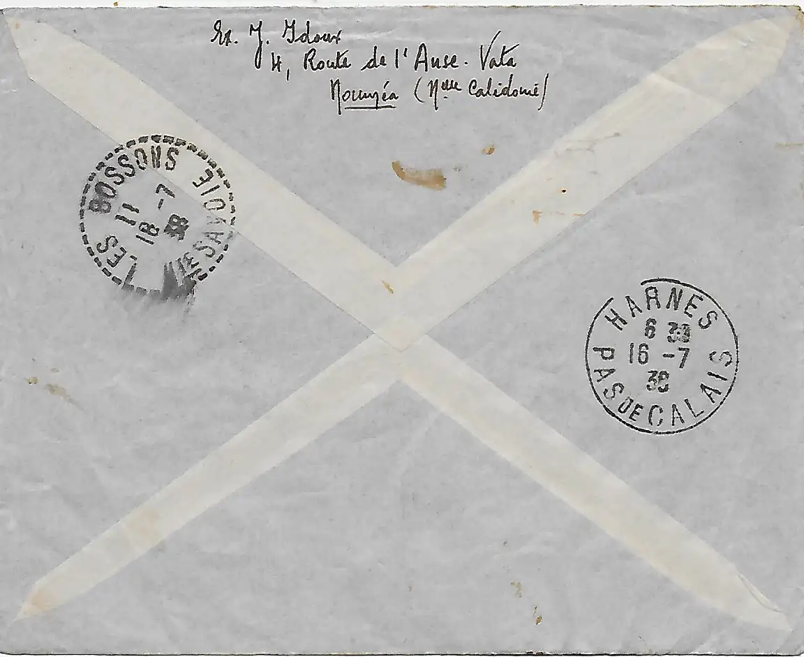 Nouvelle-Calédonie, Airpost Enregistrer Nouméa vers Harnes/Pas de Calais, 1938