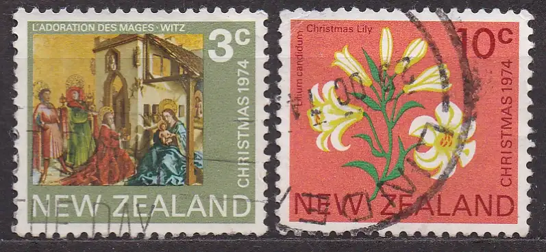 Neuseeland, Mi-Nr. 640 + 642 gest., Weihnachten 1974