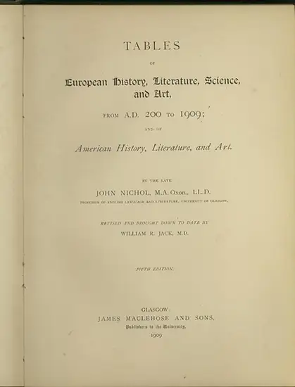Nichol, John ; Jack, William R: Tables of European History, Literature, Science and Art, from a.d. 200 to 1909; and of American History, Literature, and Art.