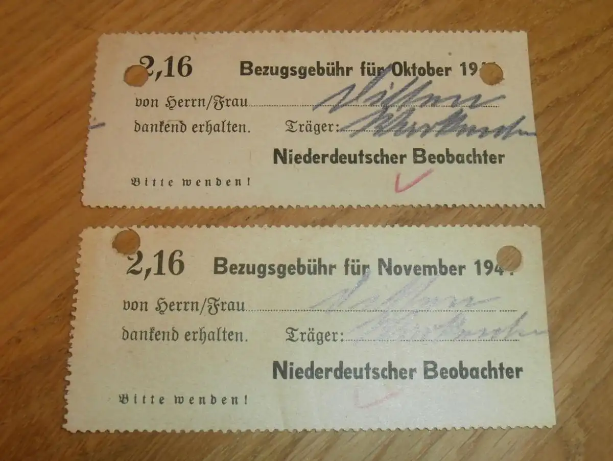Niederdeutscher Beobachter 1941 , Rostock - Mecklenburg , 2x alter Beleg , Quittung