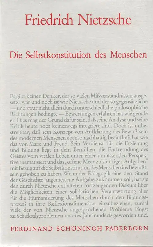 Nietzsche, Friedrich: Die Selbstkonstitution des Menschen. (Schöninghs Sammlung pädagogischer Schriften).