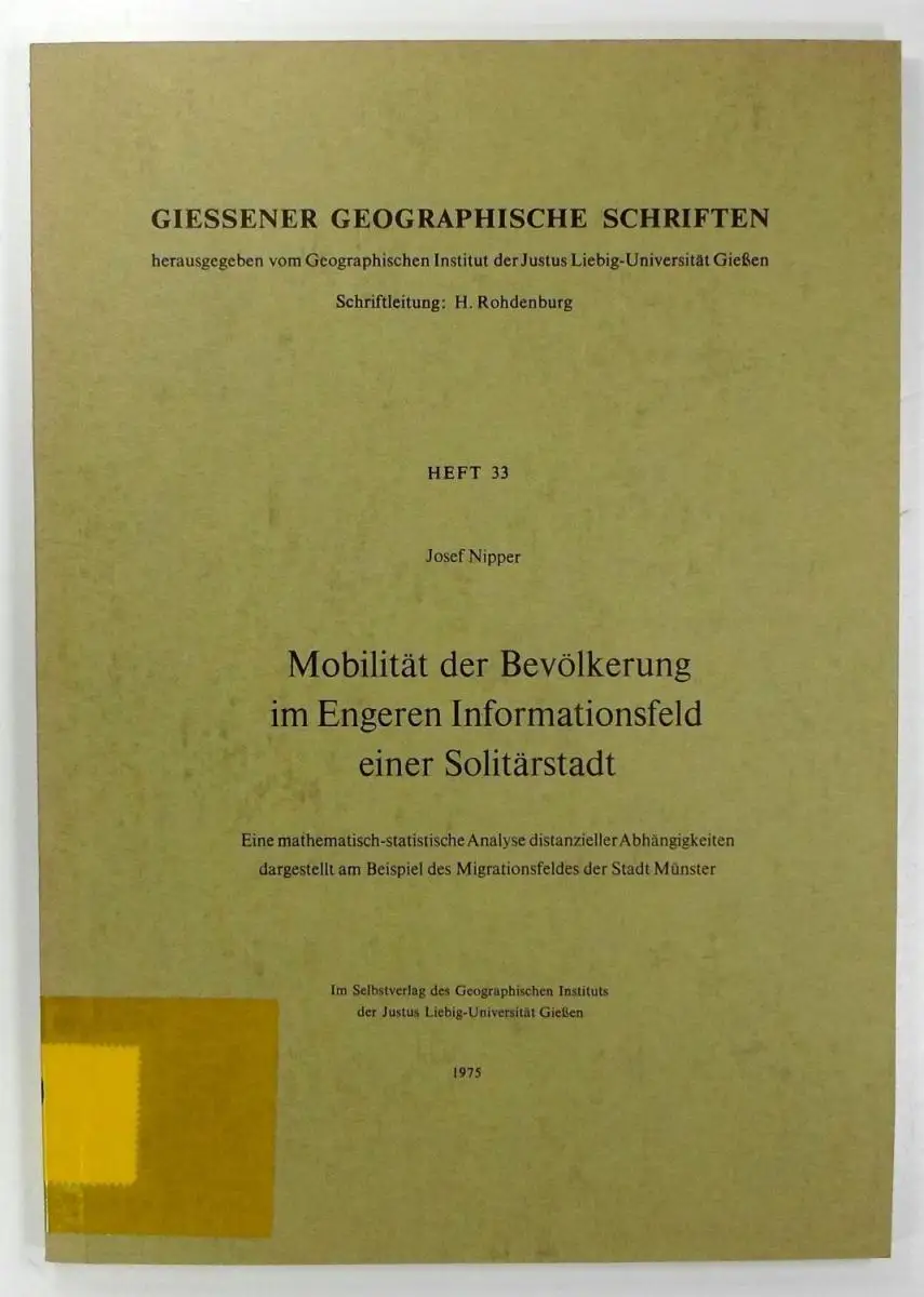 Nipper, Josef: Mobilität der Bevölkerung im Engeren Informationsfeld einer Solitärstadt. Eine mathematisch-statistische Analyse distanzieller Abhängigkeiten dargestellt am Beispiel des Migrationsfeldes der Stadt Münster. (Giessener Geographische Schriften