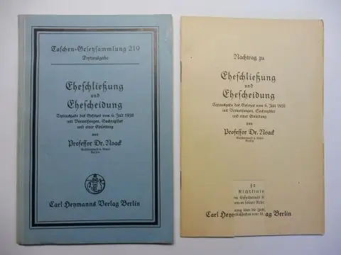 Noack *, Professor Dr. Erwin: Eheschließung und Ehescheidung - Textausgabe des Gesetzes vom 6. Juli 1938 mit Verweisungen, Sachregister und einer Einleitung von Professor Dr. Noack, Rechtsanwalt u. Notar Berlin. Gesetz zur Vereinheitlichung des Rechts der