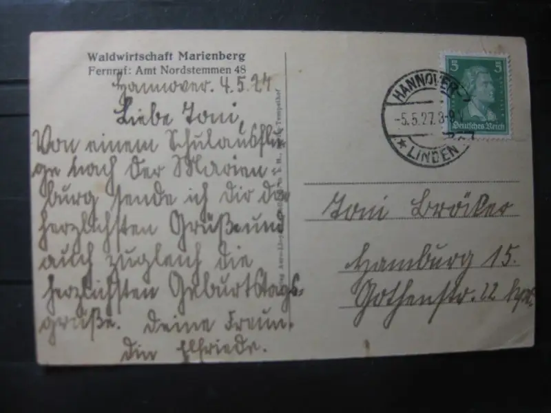 ca. 1927; Unschärfen, Spiegelungen, Verbiegungen sind allein durch das abfotografieren bedingt; Karte ist beidseitig abgebildet, Erhalt siehe Scan; ist das Foto qualitativ nicht aussagekräftig genug, kann es besseres Foto angefordert werden. Rückgabe bei Karten ist generell ausgeschlossen.
