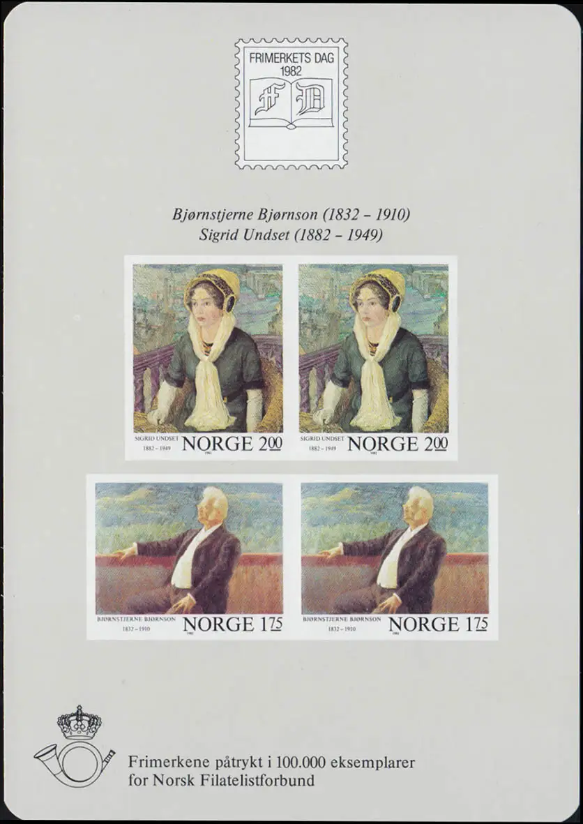 Norvège Bloc 4 écrivains 1982 comme dépensé sur papier carton sans caoutchouc