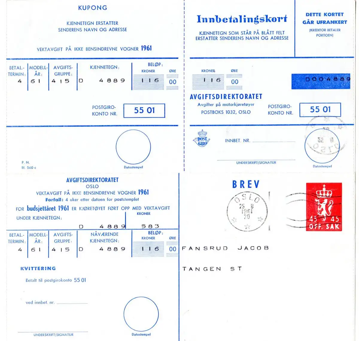 Norwegen 1961, gebr. 45 öre Off. Sak Privatganzsache Vektafgift
