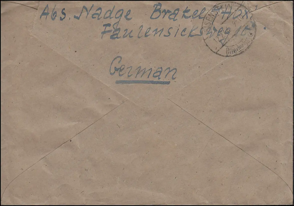 Bracle de Not-R-Zettel sur lettre R avec AM-post-MiF BRAKEL LAND Kr. Höxler 4.2.46