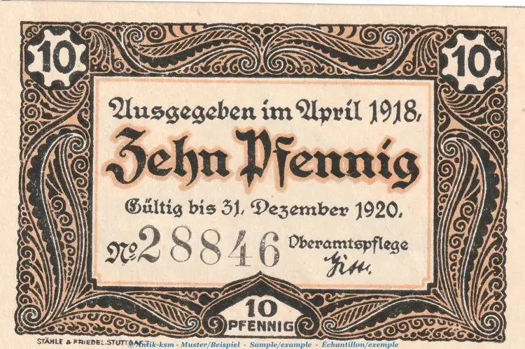 Händler-Kategorie: Notgeld[3] > Verkehrsausgaben Notgeld[13] > Verkehrsausgaben Notgeld nach Bundesländern sortiert[152] > Württemberg , Verkehrsausgaben[203]