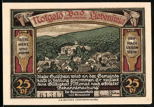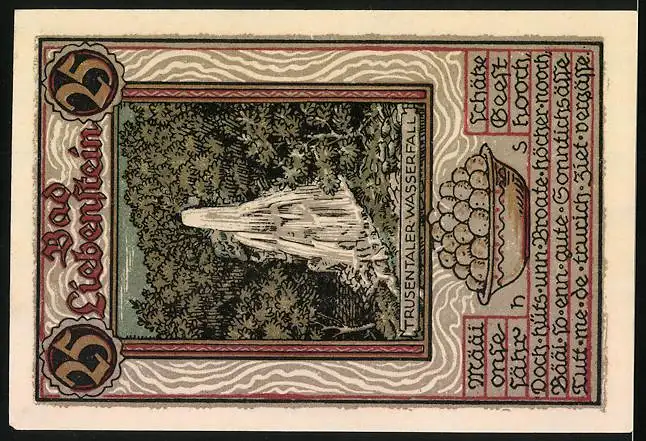 Notgeld Bad Liebenstein, 25 Pf, Ansicht von Bad Liebenstein und Trusetaler Wasserfall