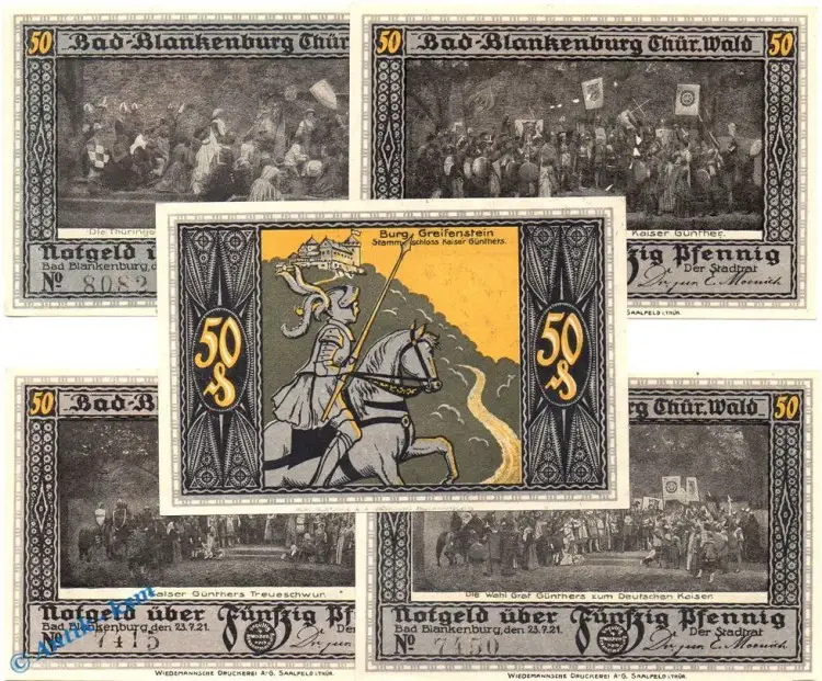 Der Notgeldsatz besteht aus : 5 x 50 Pfennig
