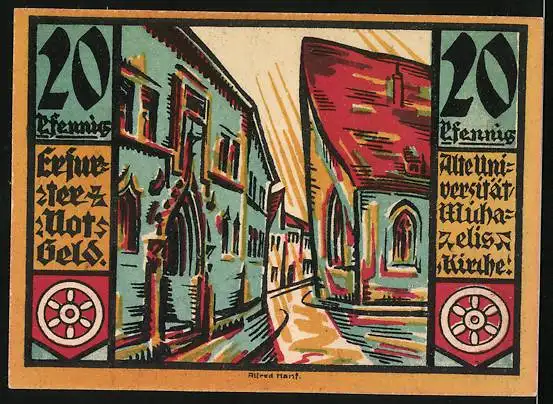 Notgeld Erfurt 1920, 20 Pfennig, Alte Universität und Michaeliskirche