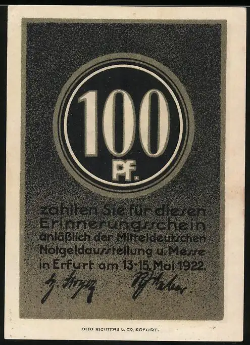 Notgeld Erfurt 1922, 100 Pfennig, Erinnerungsschein zur Mitteldeutschen Notgeldausstellung & Messe, Monumentalbrunnen