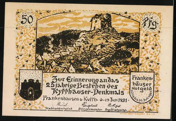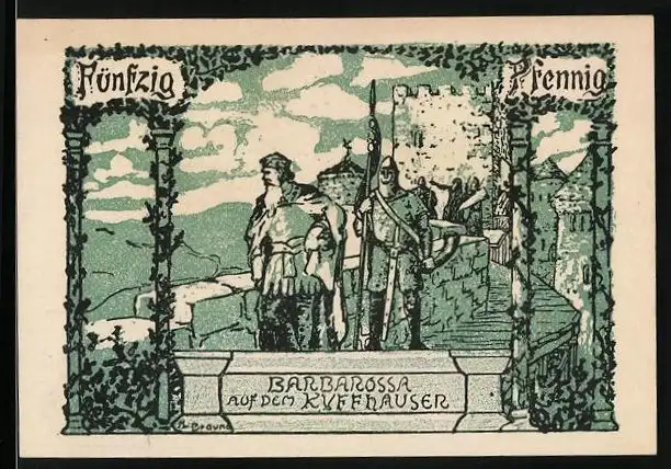 Notgeld Frankenhausen am Kyffhäuser 1921, 50 Pfennig, Barbarossa auf dem Kyffhäuser