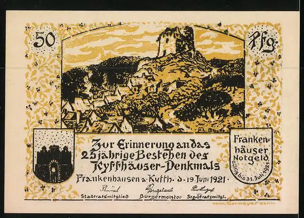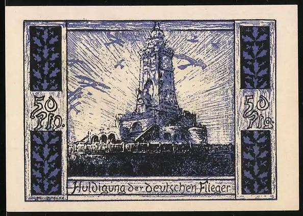 Notgeld Frankenhausen am Kyffhäuser 1921, 50 Pfennig, Huldigung der deutschen Flieger