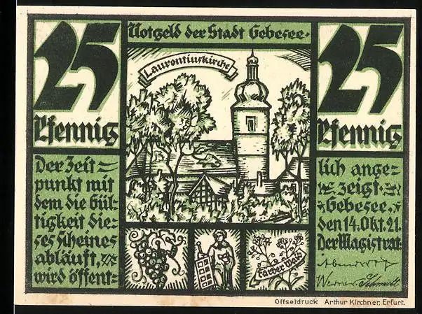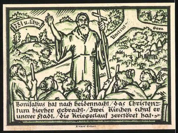 Notgeld Gebesee 1921, 25 Pfennig, Laurentiuskirche und Bonifatius predigt