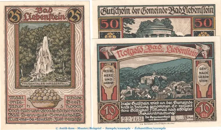 Notgeld Gemeinde Liebenstein 799.1, Set mit 3 Scheinen in kfr. o.D. Thüringen Seriennotgeld