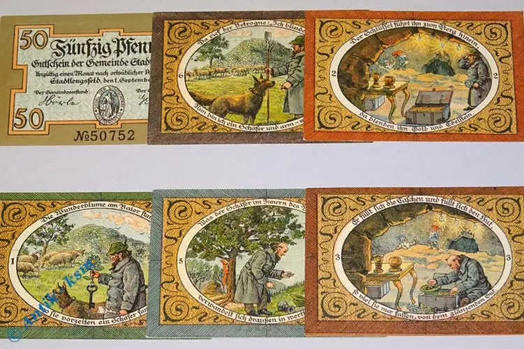 Der Notgeldsatz besteht aus : 6 x 50 Pfennig