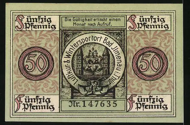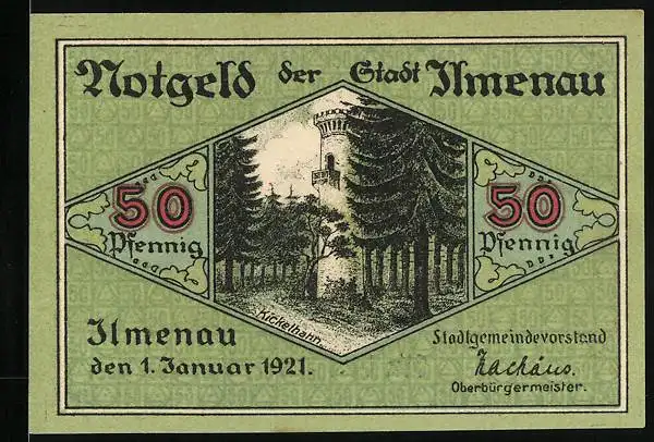 Notgeld Ilmenau 1921, 50 Pfennig, Kickelhahn im Wald