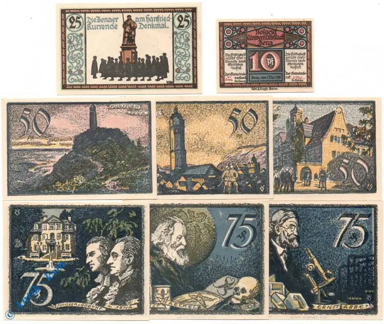 Notgeld Jena , Set mit 8 Scheinen , Mehl Grabowski 656.2 , von 1921 , Thüringen Serien Notgeld