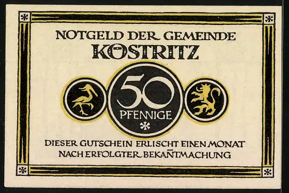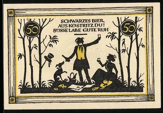 Notgeld Köstritz 1921, 50 Pfennig, Mann prostet seiner Frau mit Schwarzbier zu