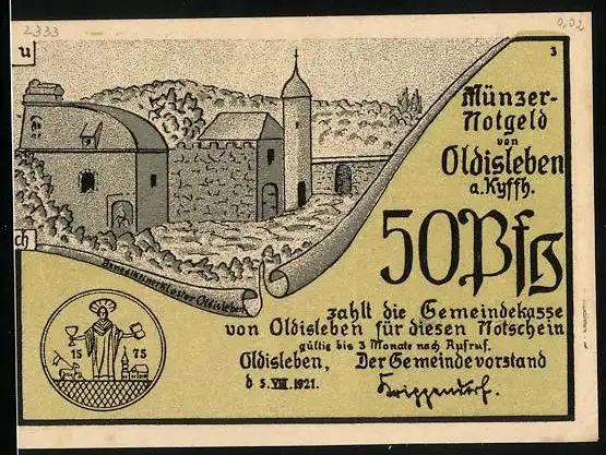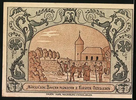 Notgeld Oldisleben a. Kyffh. 1921, 50 Pfennig, Müncer`sche Bauern plündern das Kloster Oldisleben