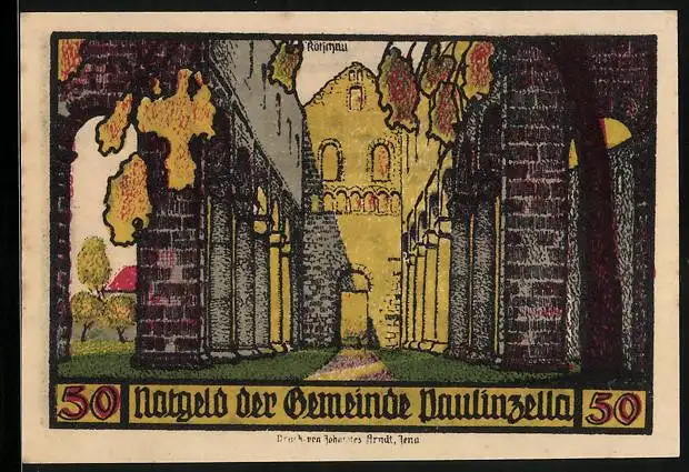 Notgeld Paulinzella, 50 Pfennig, Partie in der Klosterruine