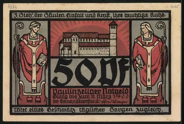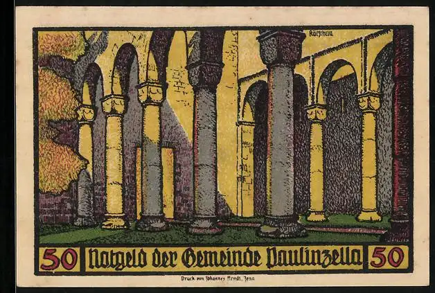 Notgeld Paulinzella, 50 Pfennig, Säulengang der Klosterruine