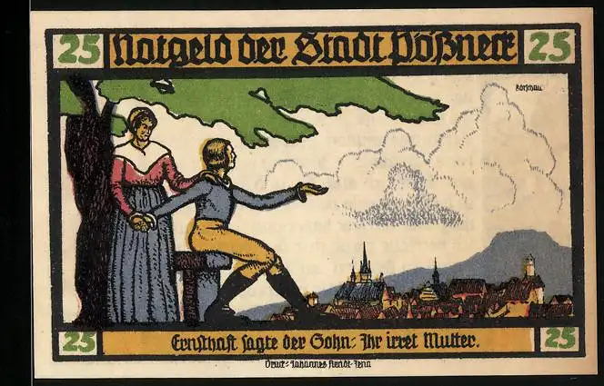 Notgeld Pössneck 1921, 25 Pfennig, Goethe: Hermann und Dorothea, Ihr irret Mutter, Häuser