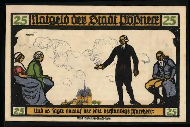 Notgeld Pössneck, 1921, 25 Pfennig, Goethe Hermann und Dorothea, Stadtansichten und Personen