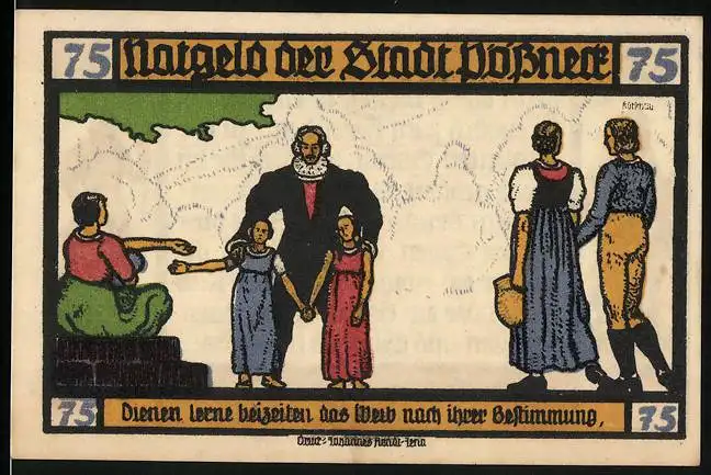 Notgeld Pössneck, 1921, 75 Pf, Illustration von Goethe`s Hermann und Dorothea