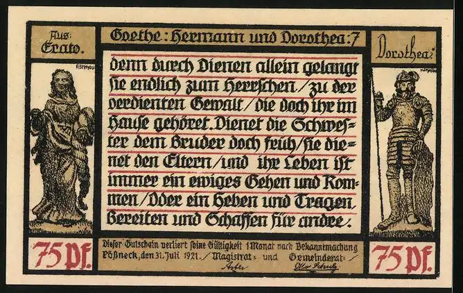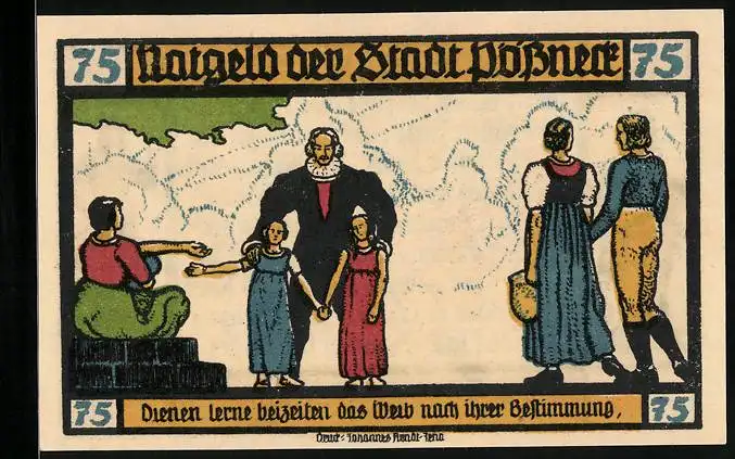 Notgeld Pössneck 1921, 75 Pfennig, Goethe: Hermann und Dorothea, Pfarrer mit Kindern, Figuren