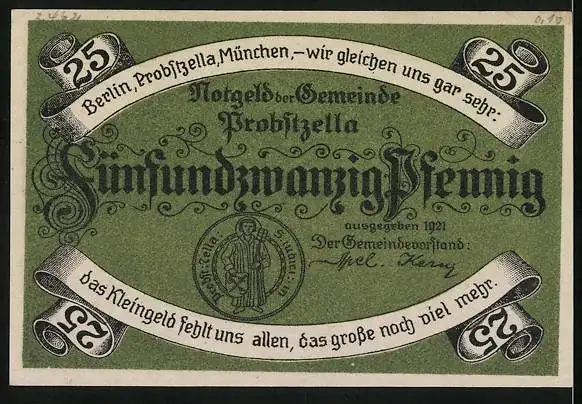Notgeld Probstzella 1921, 25 Pfennig, Die Probstei Zella 1150-1528