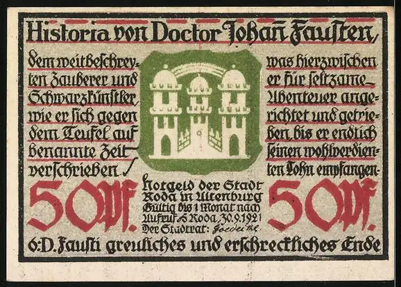 Notgeld Roda 1921, 50 Pfennig, Fausts Ende