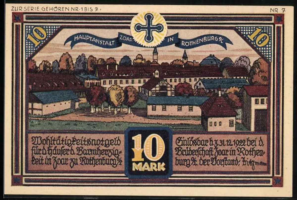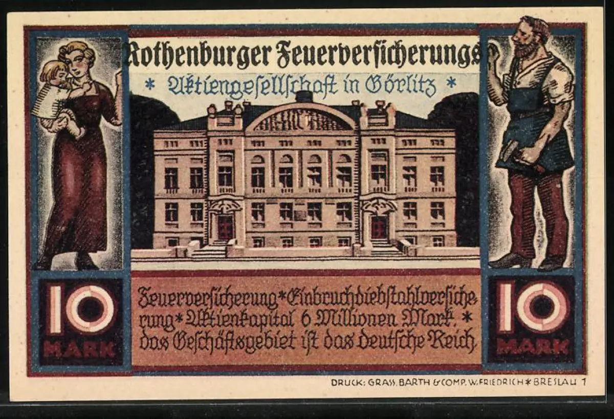 Notgeld Rothenburg 1922, 10 Mark, Hauptanstalt und Gebäude der Feuer-Versicherungs AG in Görlitz
