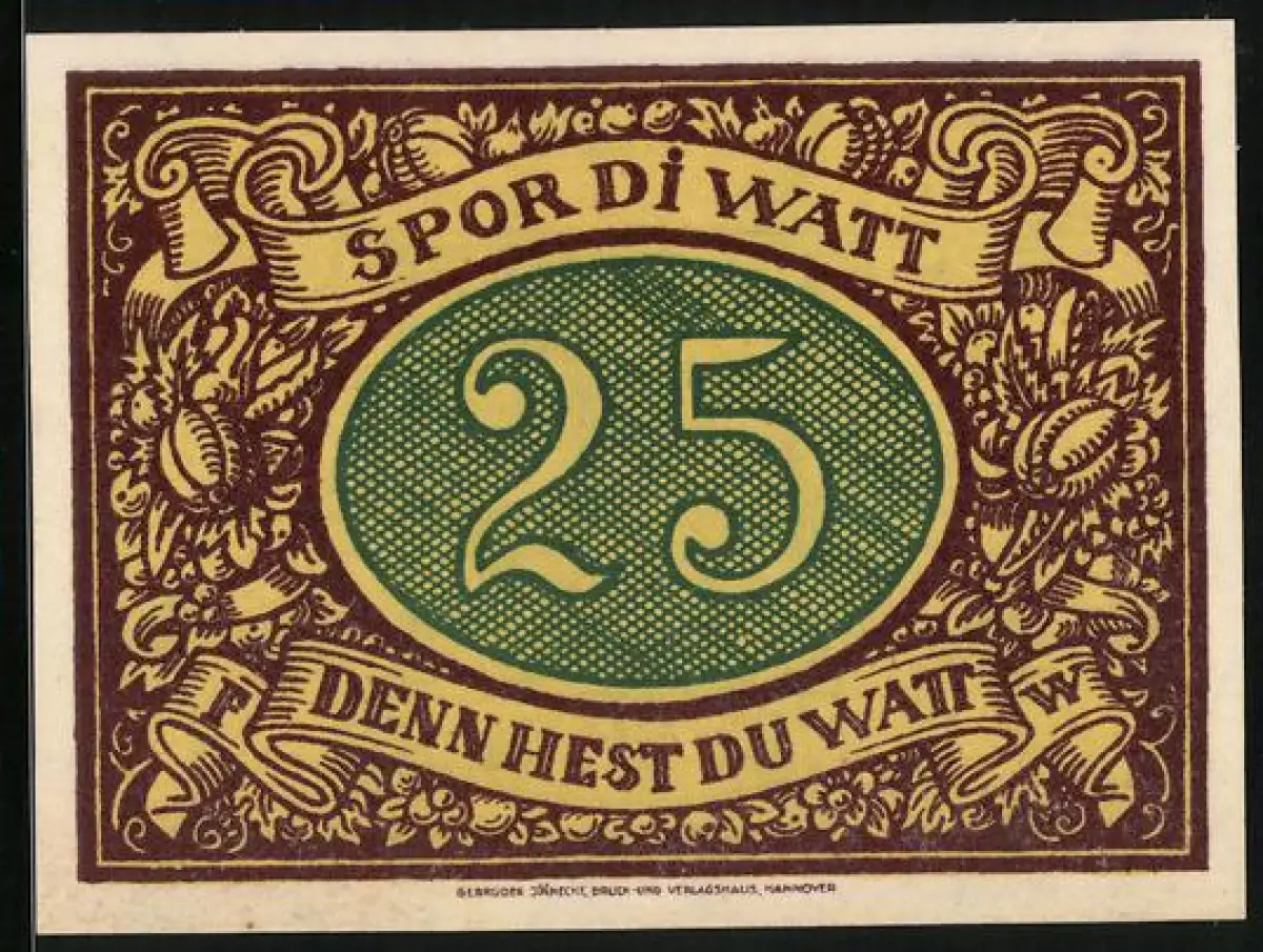 Notgeld Schneverdingen 1921, 25 Pfennig, Handwerker bei der Arbeit, dekorative Umrandung mit Spruchbändern
