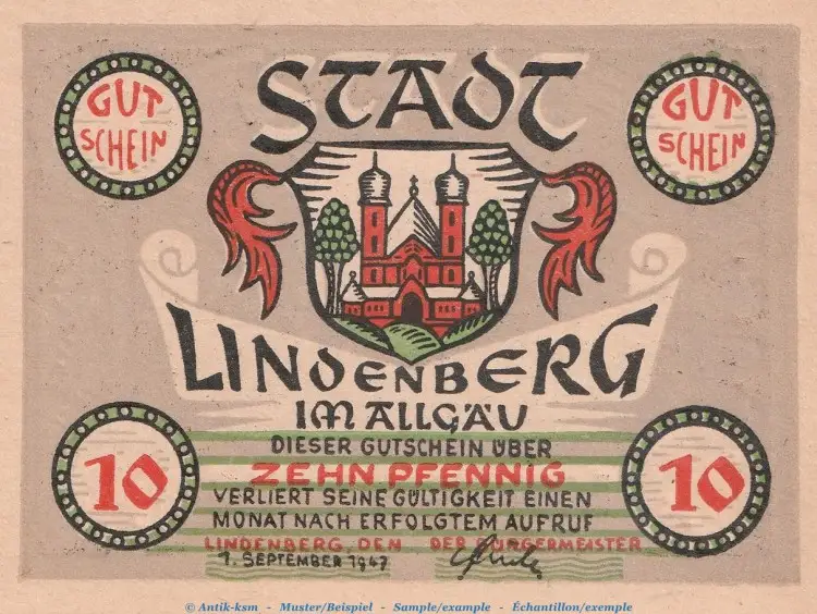 Serien Notgeld der Stadt Lindenberg , Notgeld 1945 - 1948Bundesland : Bayern  ,  Notgeld 1945 - 1948