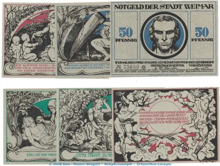 Notgeld Stadt Weimar 1398.5 , Set mit 6 Scheinen in kfr. von 1921 ,  Thüringen Seriennotgeld
