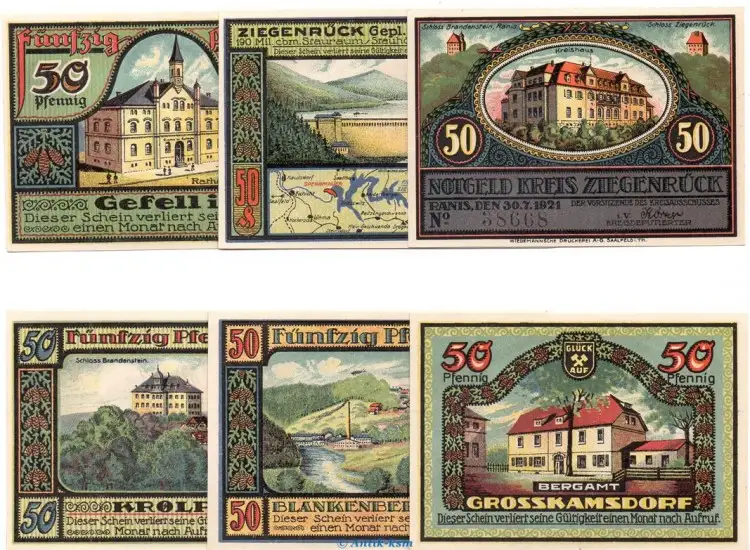 Der Notgeldsatz besteht aus : 6 x 50 Pfennig