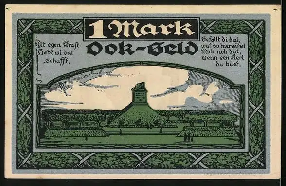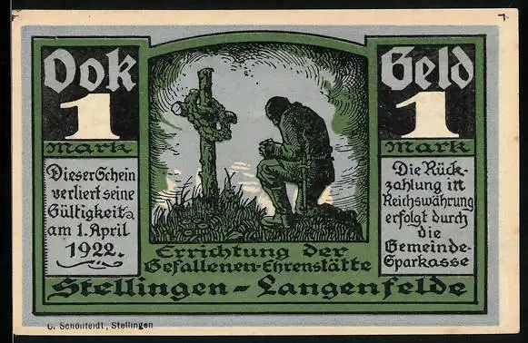 Notgeld Stellingen-Langenfelde, 1 Mark, Mann an einem Grab, Denkmal