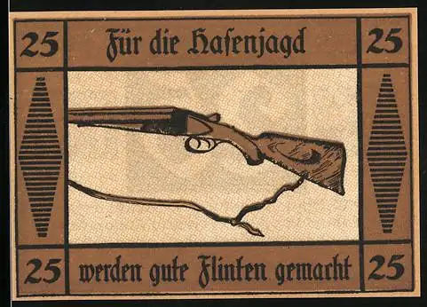 Notgeld Suhl, 1921, 25 Pfennig, gute Flinten für die Hasenjagd, Gutschein der Stadt Suhl