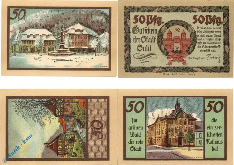Notgeld Suhl , Stadtansichten , Set mit 4 Scheinen kfr , Mehl Grabowski 1303.3 , Thüringen Seriennotgeld