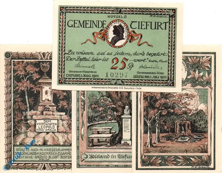 Serien Notgeld der Gemeinde Tiefurt , grünBundesland : Thüringen  ,  Grabowski / Mehl : 1323.2