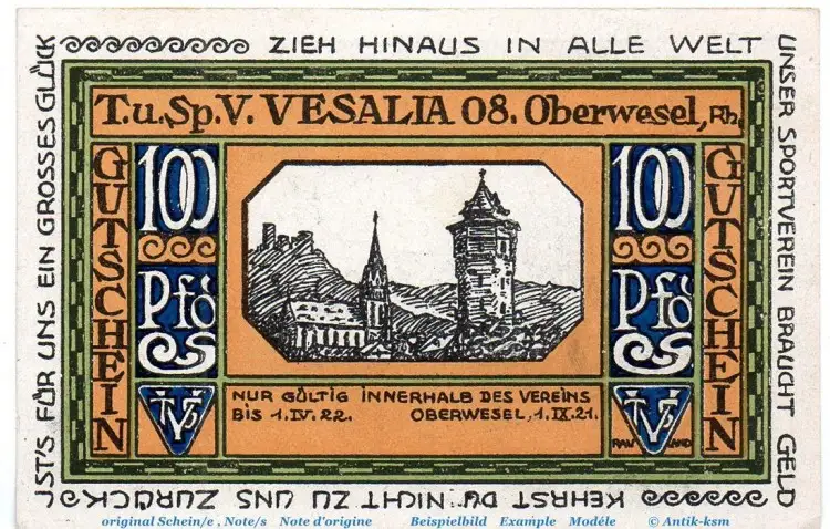 Serien Notgeld Turn- und Sportverein Vesalia 08 , OberweselBundesland : Rheinland Pfalz  ,  Mehl / Grabowski : 1005.1