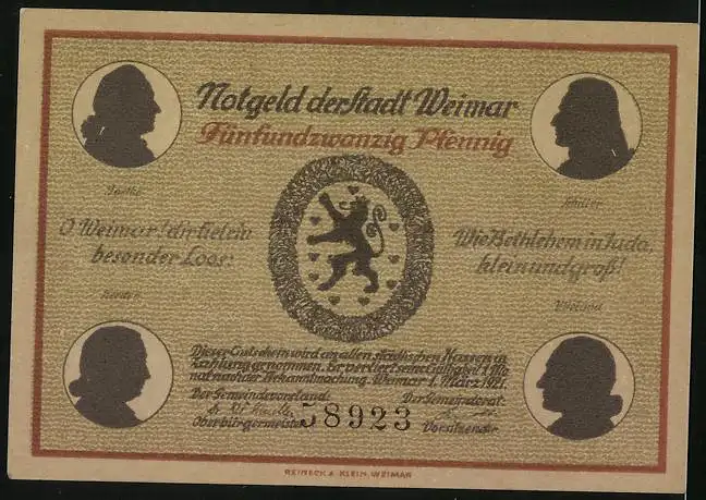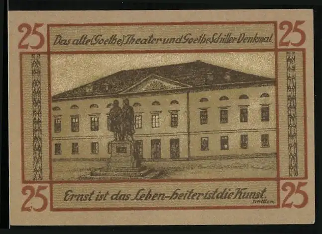 Notgeld Weimar 1921, 25 Pfennig, Goethe-Theater und Goethe-Schiller-Denkmal