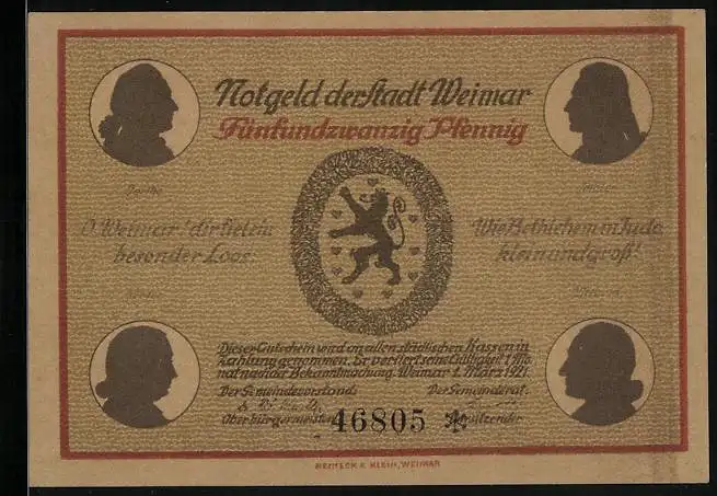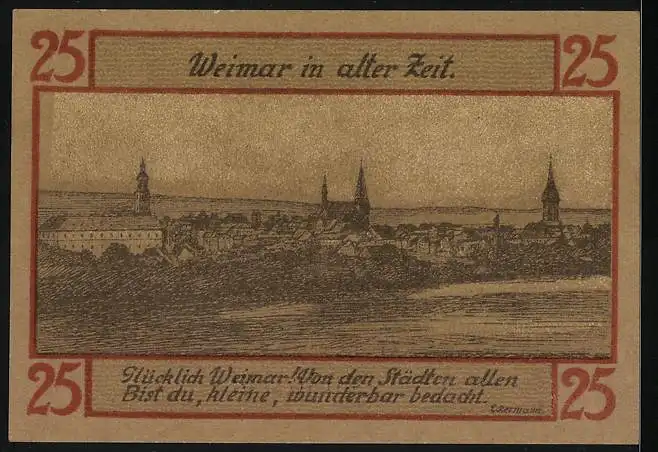 Notgeld Weimar 1921, 25 Pfennig, Ortsansicht in alter Zeit